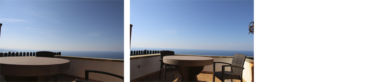 In our terrace with large windows and stunning views of the sea where breakfast is served.